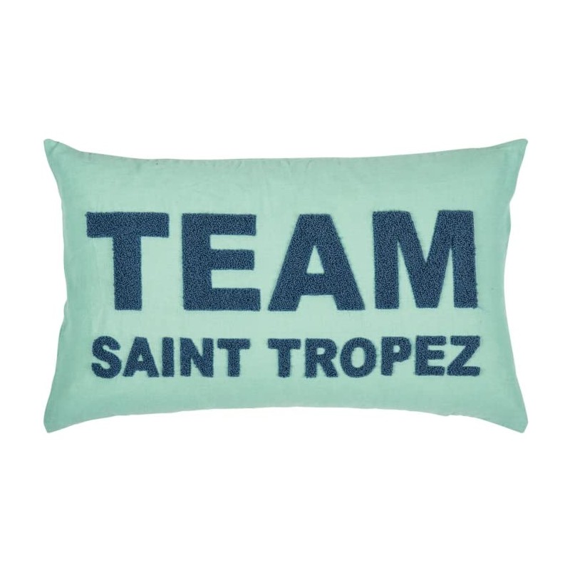 Pamper yourself with this luxurious PAD Team Saint Tropez pillow in turquoise. The breathable microfibre cover material and soft filling ensure maximum comfort. The cushion measures 30 x 50 cm and is ideal for your home or decorative purposes. It is equipped with a zip and bears the Pad logo as a subtle jewellery element.