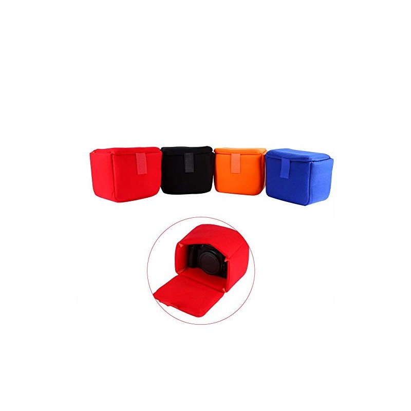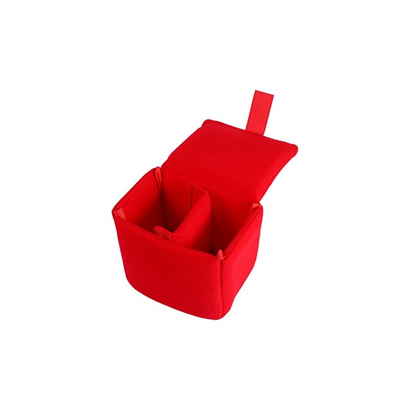 Our portable camera bag is made of velvet material, which is very comfortable to protect your camera from scratch. Inner partition padded give your camera better protect. You can move the partition pads as you like. Compact size that you can also put this camera bag into your backpack or other bags.