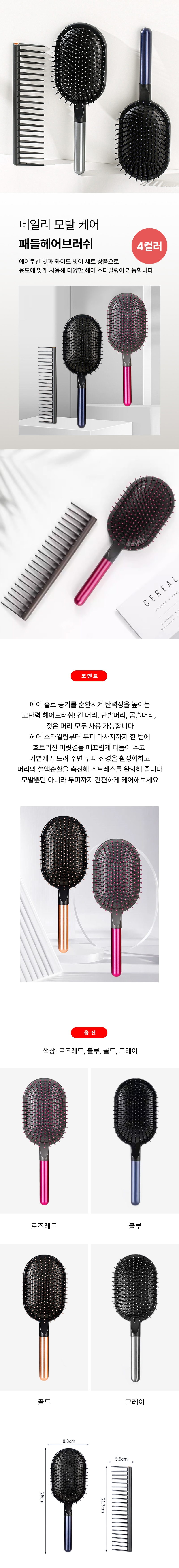 패들 헤어 브러쉬 엉킴방지빗 포함 세트 4컬러 골드