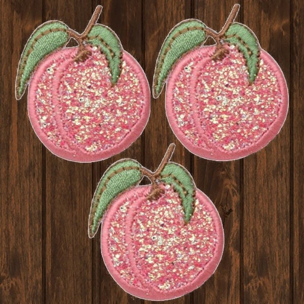 Sparkly Peach Applique Patch - Stone Fruit, Food Badge 1.5" (3-Pack, Iron on)