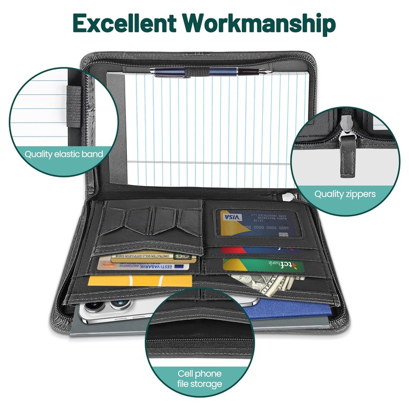- NO MORE FUMBLING AROUND - Various inside pockets and slots capable of holding cards, documents, and a pen, which facilitate your daily use and business travels. Refillable 4.9x8 inch note pads included for extra convenience