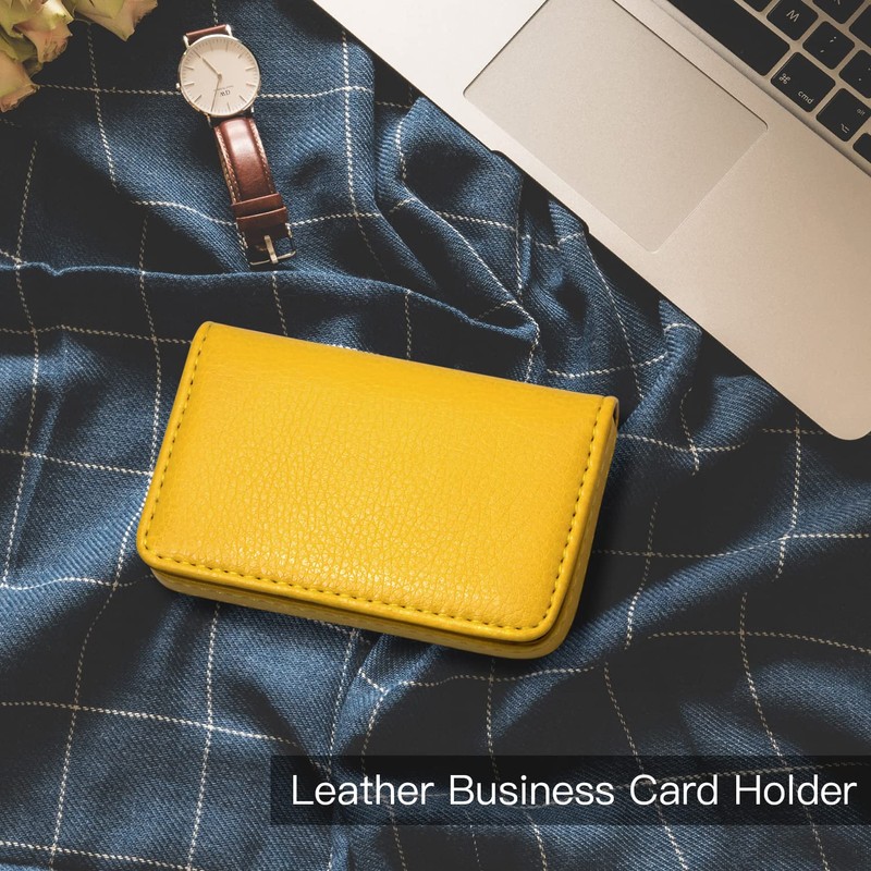 Padike Business Name Card Holder Luxury PU Leather,Business Name Card Holder Wallet Credit card ID Case / Holder For Men & Women - Keep Your Business Cards Clean(Yellow)