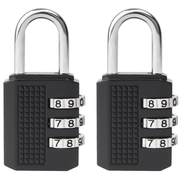 Padlock Dial 3 Digit Dial Lock Small Auxiliary Lock Anti-Theft Waterproof Rust Proof Luggage Backpack School Locker Warehouse (2 Pcs, Black)
