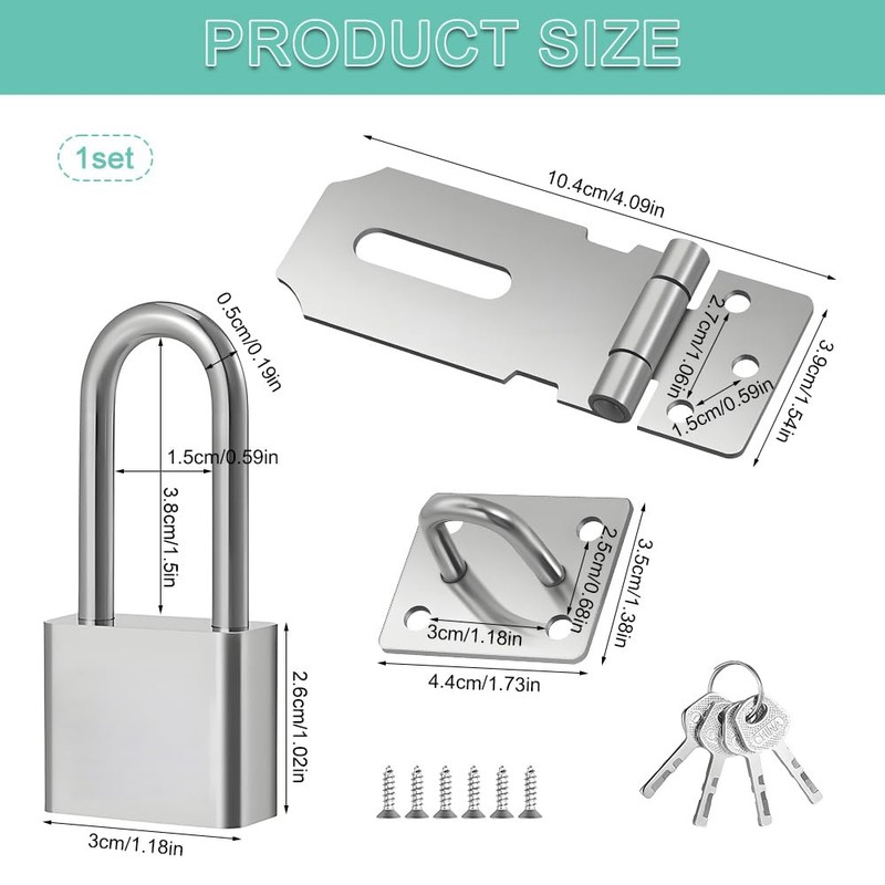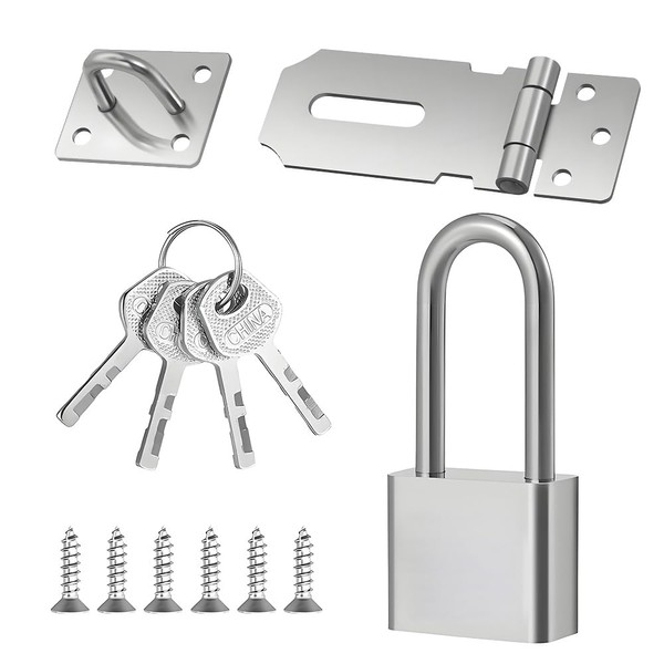 Padlock Hasp Kit, Door Hasp and Staple with Padlock, Duty Hasp and Staple Door Clasp Gate Latch Stainless Steel Door Lock with Keys and Screws Silver Stainless Steel Door Lock with Keys and Screws Garden Gate Padlock