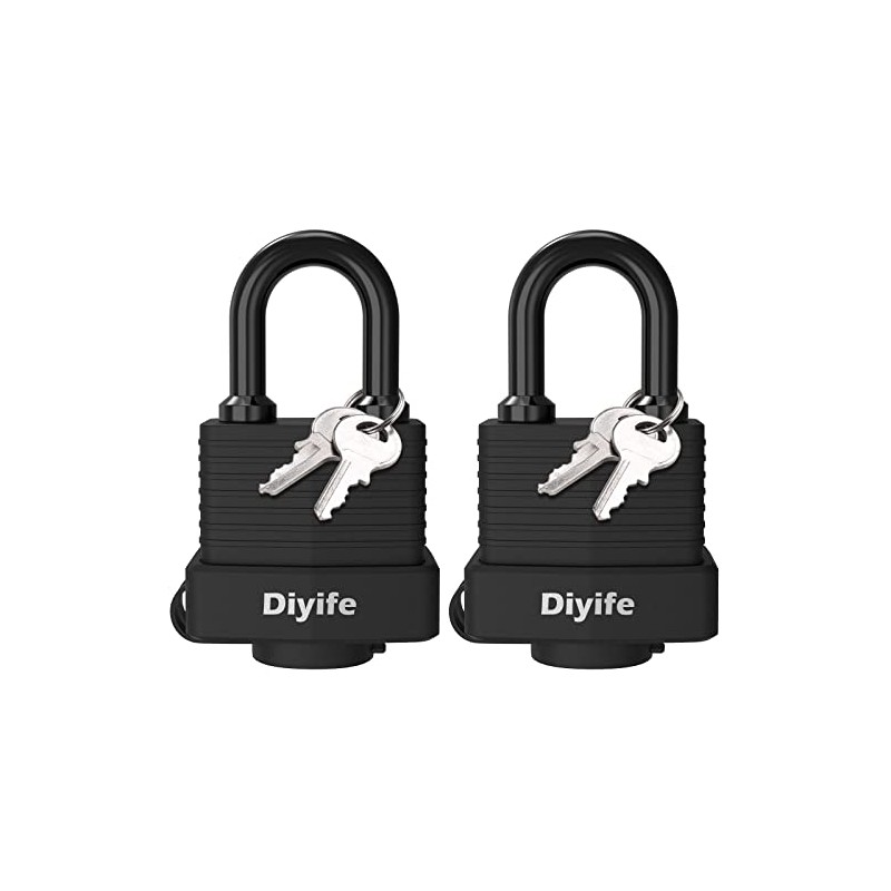 Padlock with Key, [2 Pack] [4 Keys] Diyife Padlock Waterproof Lock Key Padlocks 40mm Heavy Duty Padlocks Anticut for School,Gym Locker, Garage, Fence, Shed, Yard,Cabinet,Toolbox,Outdoor & Indoor Use