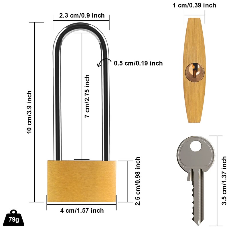 - 【Easy to use】 This brass padlock is easy to install and operate manually. 2 locks, 6 same keys, easy to open.
