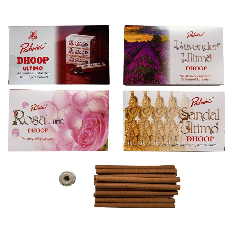 Padmini Incense Classic Dhoop - Sandalwood - Lavender - Rose (4 Pack - Total 60 Sticks)