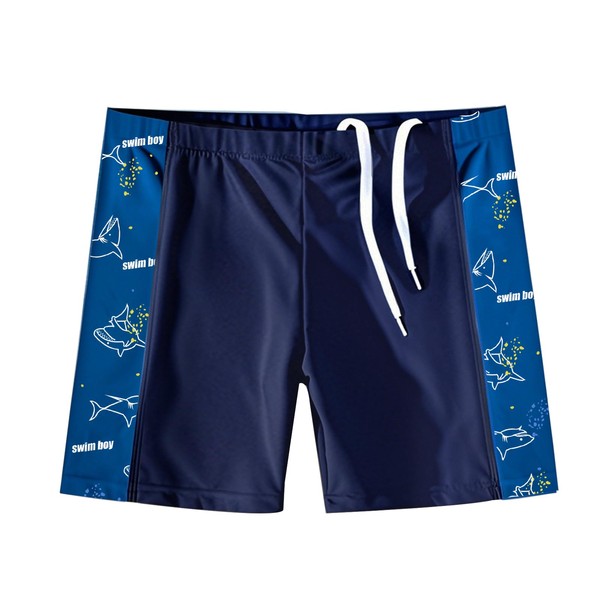PAEHUIMT Boys Swimming Trunks Swim Shorts Kids 6-12 Years Shark Pattern Swim Trunks, darkblue