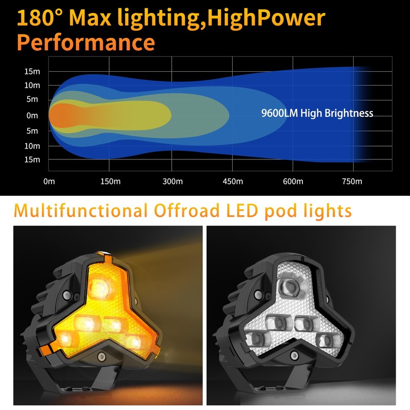 - 【FOG & DRIVING COMBO】2024 New Upgraded LED chips and for intense and natural light. 6500K white beam and 3500K yellow beam for illumination range farther and wider, Enhance your vehicle's visibility with additional yellow masks to customize the color of your pods, providing strong penetration and optimal color temperature for low-visibility driving conditions. ensure driving safety in the harshest environments.