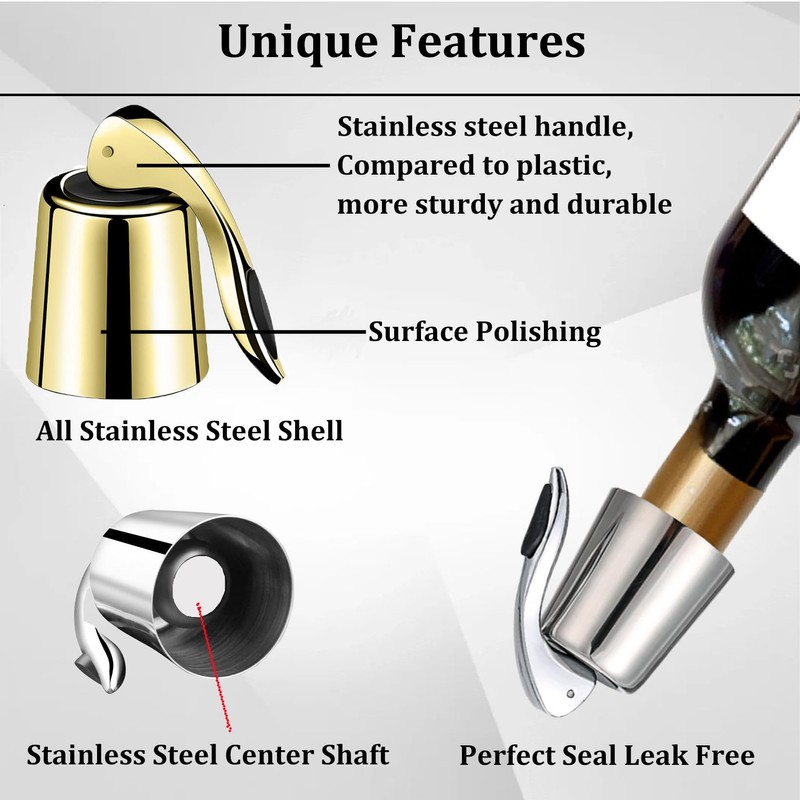 - Built to Last: Boasting a food-grade stainless steel shaft, polished metal designer, The wine stopper not only looks good but also offers a completely healthy and safe substitute to the regular corks that are prone to breakage and crumbling
