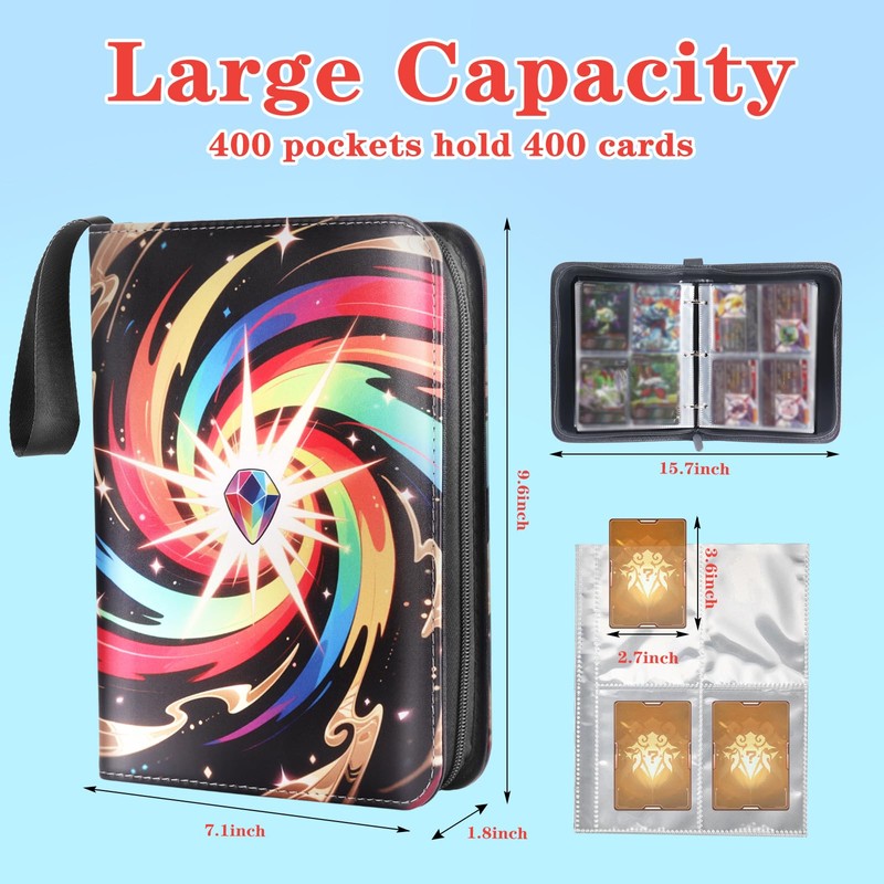 - Large Capacity: Trading card binder 4 pocket holds up to 400 cards, with 50 double-sided protective sheets. Whether you're using it as a card organizer or a card collection binder, it provides sufficient space to store and display all your trading cards