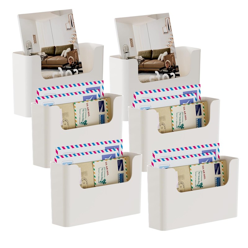 PAG-Mass Hanging Wall File Organizer, Pack of 6 Plastic Desktop Accessories Storage Rack No Drilling Wall Mounted Magazine Mail Paper Envelope Planner Holder for Home Office School