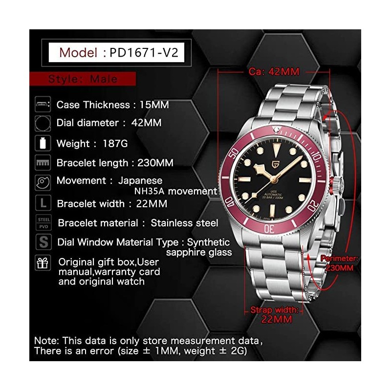 Pagani Design BB58 Men's Watches Mechanical Watch for Men Luxury Automatic Watch Men NH35 100M Waterproof, Pd1671-v2-red-cj, Classic