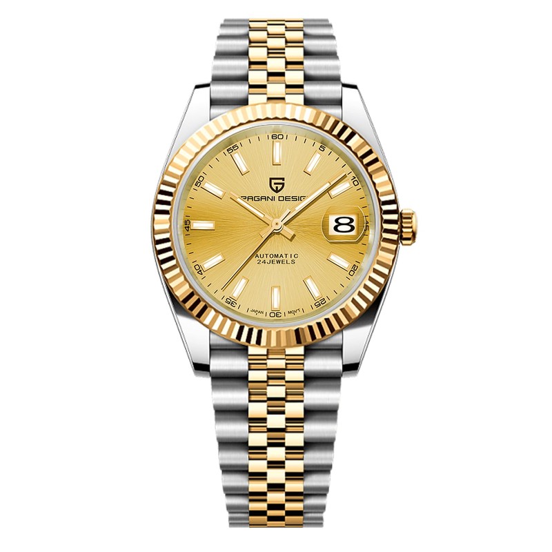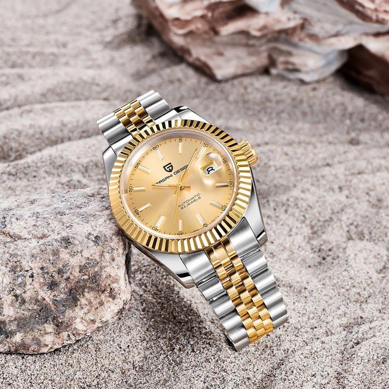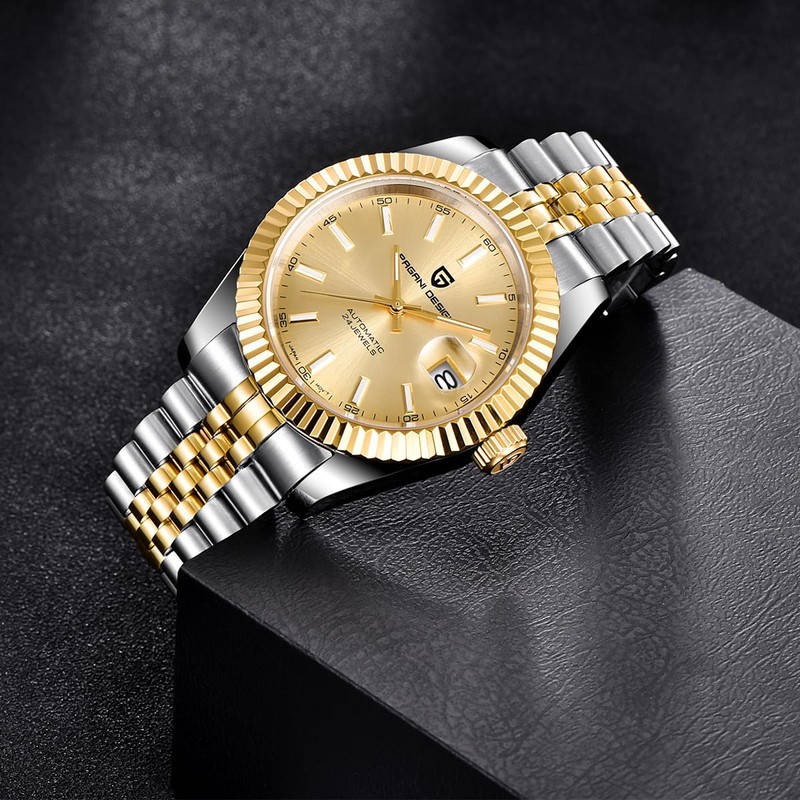 Pagani Design Men's Automatic Watch Japanese Automatic Movement Classic Watch Sapphire Glass 100 Metres Waterproof Luminous Business Men's Watch, All Gold, Classic