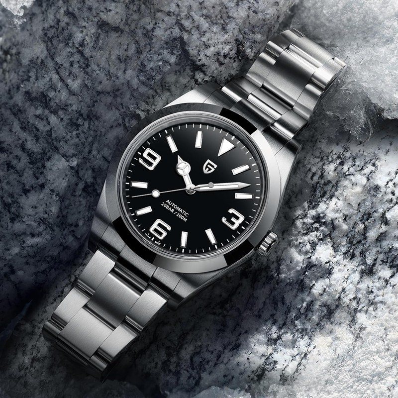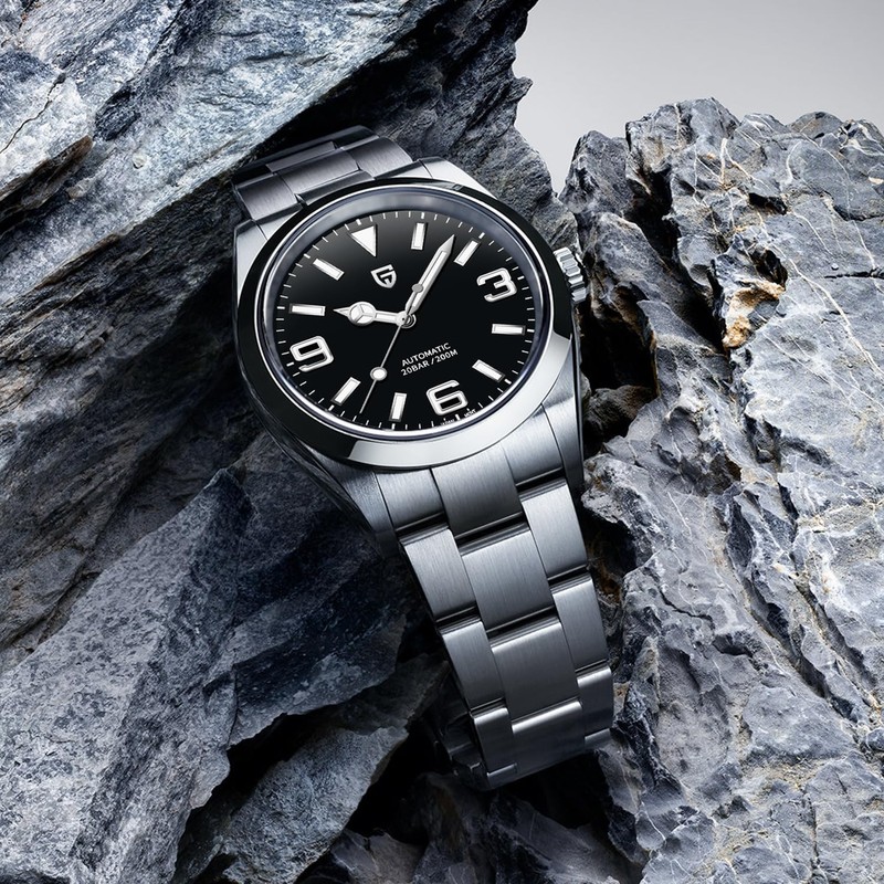 Pagani Design Men's Automatic Watch NH35 Sports Watch 200M Waterproof 40 mm Business Men's Mechanical Watch, Black-369, Modern