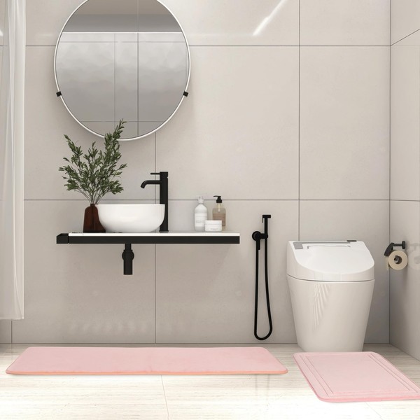 PAGGED Pink Bathroom Rug Set of 2 Memory Foam Bath Mat Runner Set Non Slip Washable Floor Mats Soft Absorbent Plush Microfiber Shower Tub Bathrug Blsh