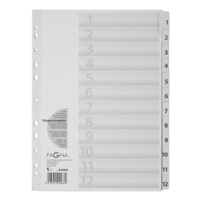 Pagna 31005 08 Register 1-12 A4 12 Part Organiser – White