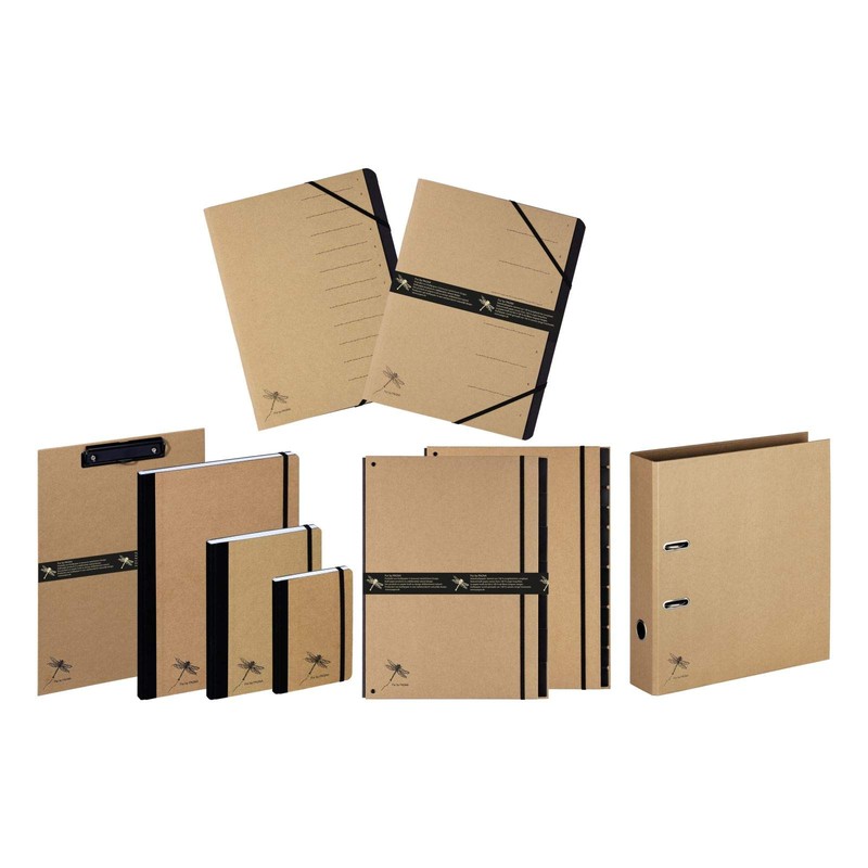 • Cover made of sturdy grey cardboard (RC) covered with dirt-repellent kraft paper and high-quality, subtle embossing of a dragonfly in deliberately natural design