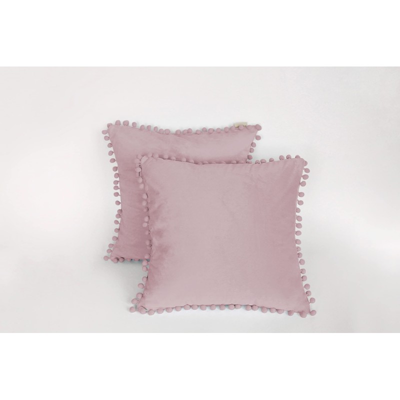 Pagnanno. Set of 2 Soft Velvet Cushion Covers 45x45cm(18x18 Inches) Pom Throw Pillowcases Square Cushion Covers for Chairs,living and bedroom with Invisible Zipper(18"x18" (Pack of 2), Blush Pink)