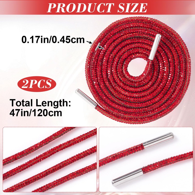 - Packing: The rhinestones tube ropes set including 1Pair(2Laces) red tennis shoe laces. The length is 47",120cm. Great for any stage costume or to add as a trim on any out fit.