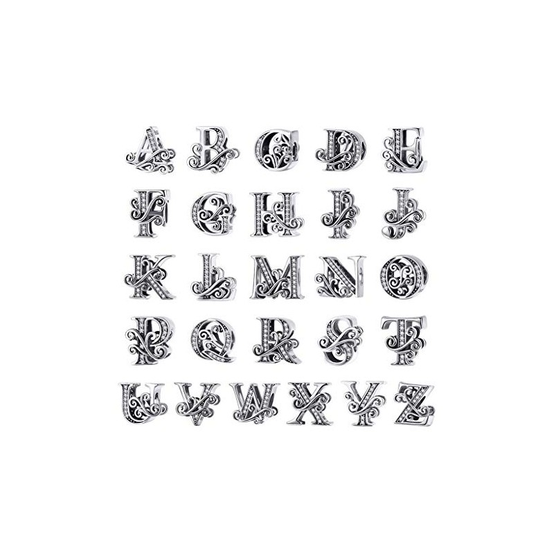 PAHALA 925 Sterling Silver 26 Letters Alphabet With Crystals Charms Beads (H)