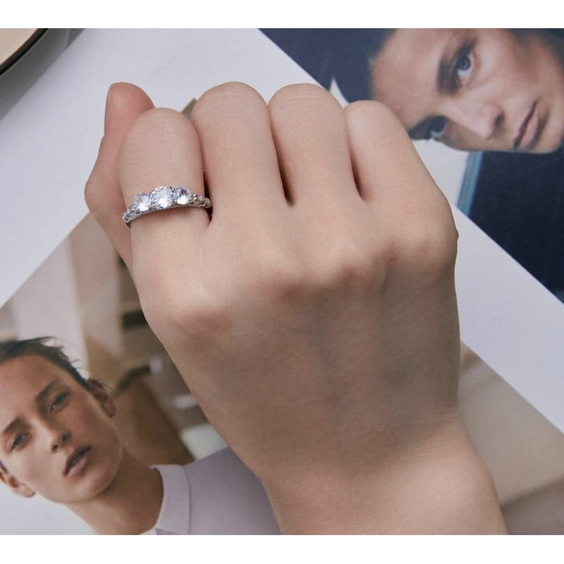 - 💖 [Description] The skin-friendly ring is decorated with complicated and beautiful patterns, and the three crystal zircons in the middle are exquisite and luxurious.