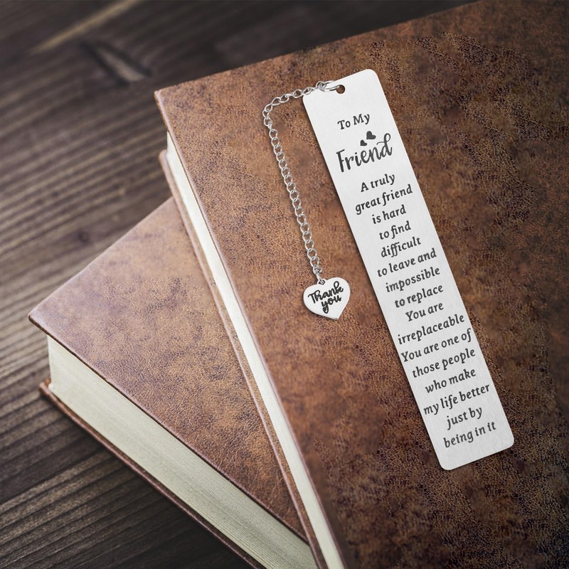 - Thoughtful Bookmark Best Friend Gifts for Women: This stainless steel bookmark is a meaningful gift for birthdays, graduations, or Christmas. Engraved with “A truly great friend is hard to find…” it’s a heartfelt way to show your appreciation for a best friend or family member