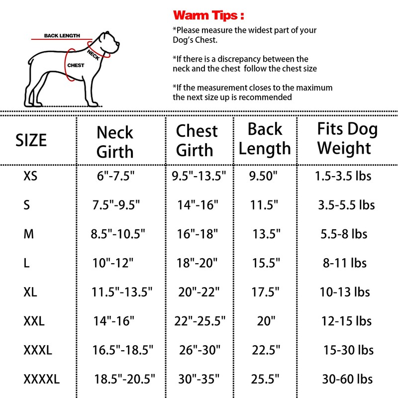 - Sizes: The shirt is available in different sizes to fit small to medium-sized dogs. Be sure to measure your dog's chest and neck girth before purchasing to ensure the best fit. The size chart can help guide you in choosing the right size for your pup.