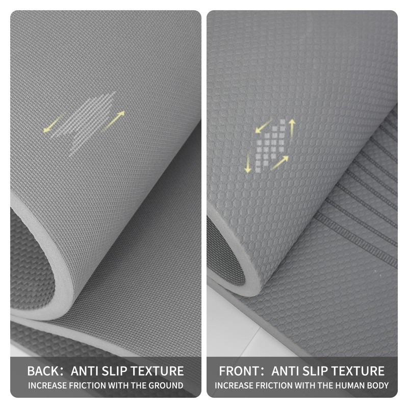 - NON SLIP EXERCISE MAT:This non slip yoga mat feature a textured surface on both sides to give you optimum levels of traction and a stylish design to keep you motivated and focused.