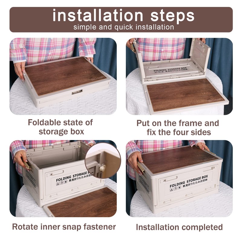 • Storage Box with Lid: The practical and beautiful Imitation wooden lid can be used as a table for placing snacks and drinks, and the sturdy and safe structural design allows the storage box to maintain its shape for long-term use. Efficient and convenient storage of picnic utensils and furniture items to add a lot of fun to your life.