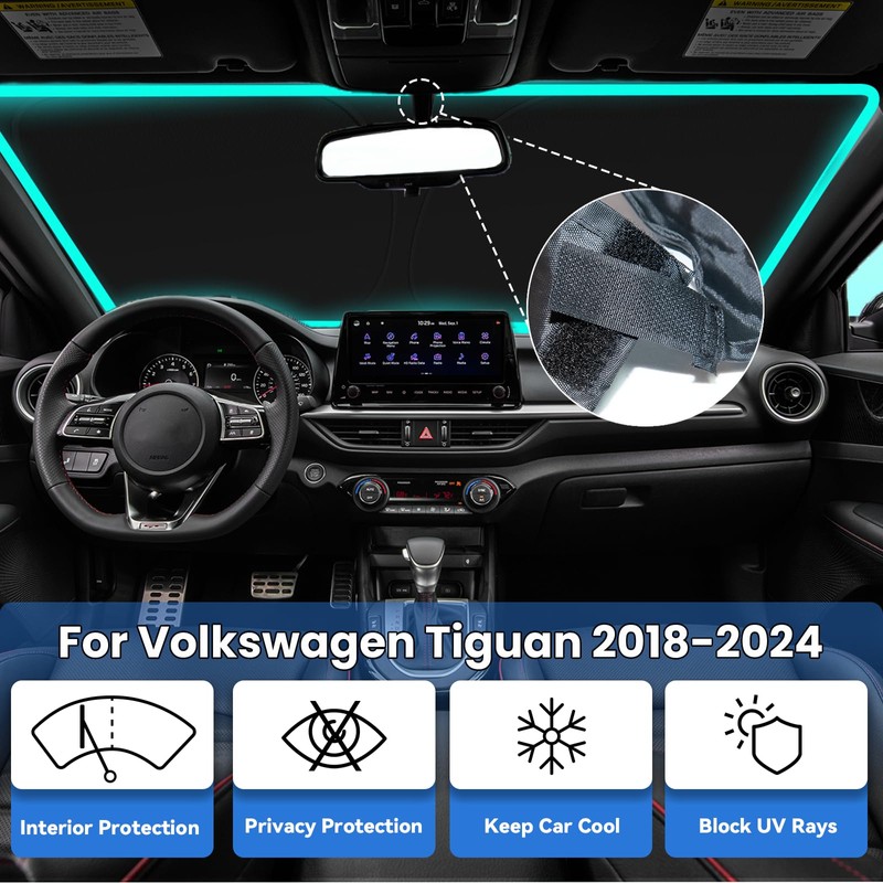 - 【240T Sunshade】: PAIMOHO car sun shade for your VW Tiguan 2018-2024 is custom-fit for a precise installation; It fits perfectly to your window without the need for suction cups; It won't sag or collapse, making it ideal for outdoor camping adventures