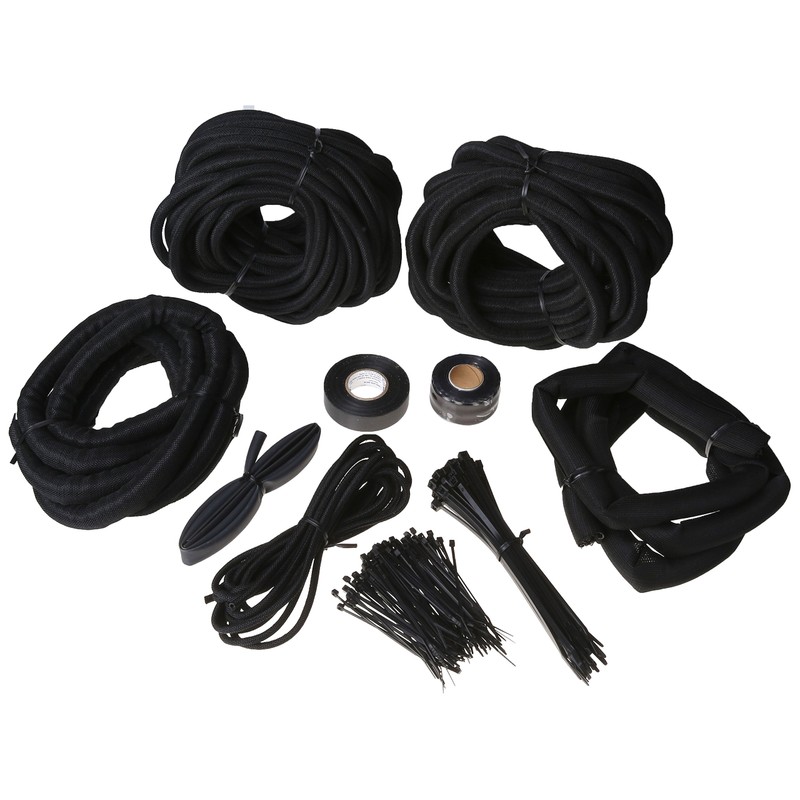 - Kit includes 6' of 1”, 10' of 3/4", 30' of 1/2", 60' of 1/4", 15' of 1/8” Classic Braid; 2' of 3/8" Heat Shrink, 1' of 1/4" & 1/2" Heat Shrink; 100 of 4" tie wraps, 40 of 7" tie wraps; Electrical tape; Stretch and Seal tape
