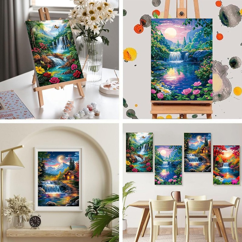 Paint by Numbers for Adults and Kids Beginner, 4 Pack Landscape Painting by Number Kits On Canvas, Number Artist Paint by Number Kit DIY Oil Painting Acrylic Paints, Home Wall Decor 12x16in