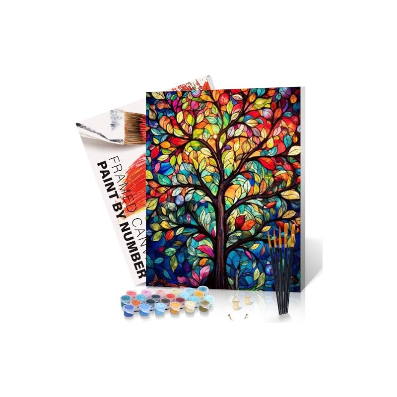 Paint by Numbers Kit for Adults Framed Canvas - 16x20 Inch Tree of Life Adult Paint by Number Kits with Frame, Tree of Life DIY Acrylic Framed Canvas for Painting Kits for Adults with Gift Box
