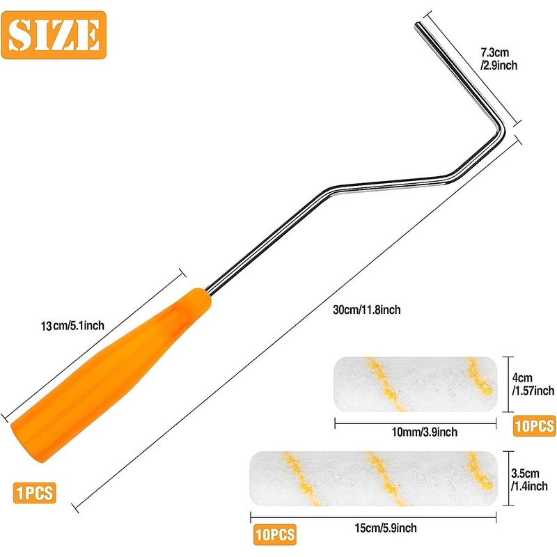 - Two sizes: our paint rollers are available in two sizes: 10 cm/4 inch and 15 cm/6 inch. Each size has 10 pieces. You can use different sizes in different areas and a sufficient quantity can be replaced.