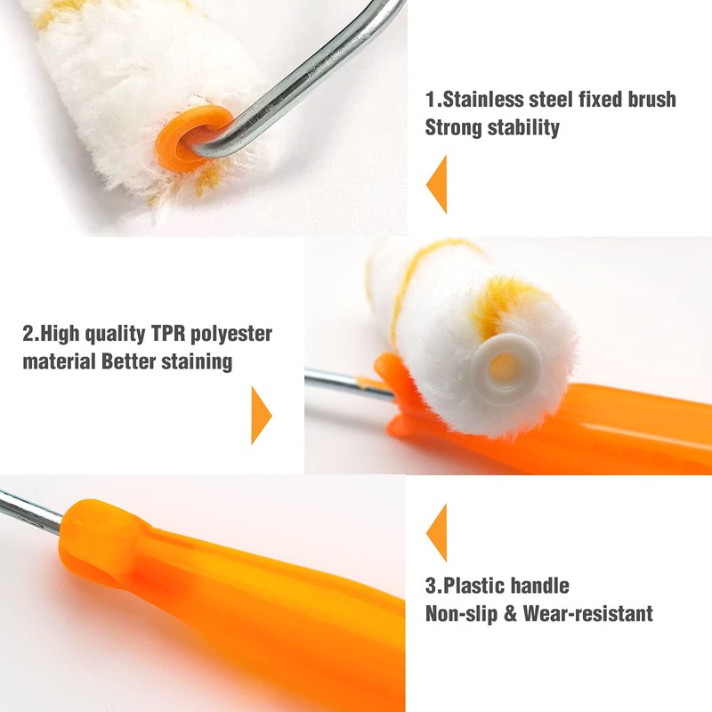 - Flexible Rotation The paint roller rotates flexibly and has strong applicability. It can easily smear the edges and corners of the wall and the gaps. The painting surface is large and the effect is very good. It is beautiful and has no uneven streaks, saving time and effort.