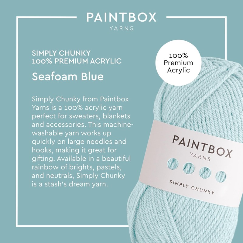 - SIMPLY CHUNKY: This pack contains 100g (3.53oz) of Paintbox Yarns Simply Chunky acrylic yarn in a seafoam blue color. This roll of yarn has a total length of approximately 149yds (136m). Available in a range of beautiful rainbow colors including brights, pastels, and neutrals, Simply Chunky is a stash's dream yarn.