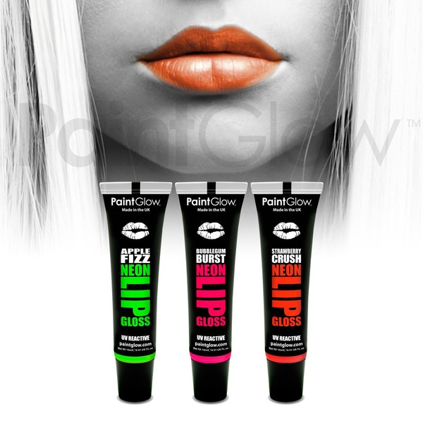 PaintGlow UV Reactive Neon LipGloss (3 Pack) Festival Fancy dress glow makeup