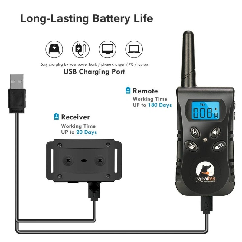 【Up To 20 Days Of Rechargeable Battery Life】2 hours of full charge, the remote no-shock dog collar can work for 20 days, of course it depends on the frequency of your use.