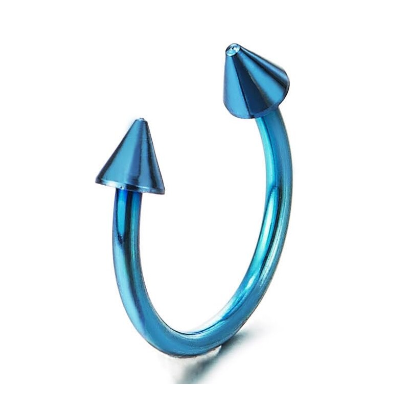 - Pair Blue Spike Arrow Huggie Hinged Earrings, Half Circle, for Men Women, Screw Back