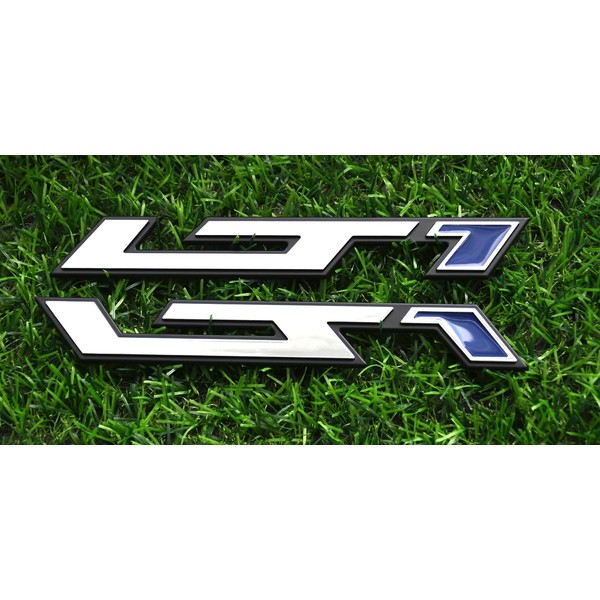 Pair New LT1 Emblems 3D Badge Left and Right Engine Hood Badge Decal Replacement for Corvette C4 C7 ZR1 (Silver Blue)