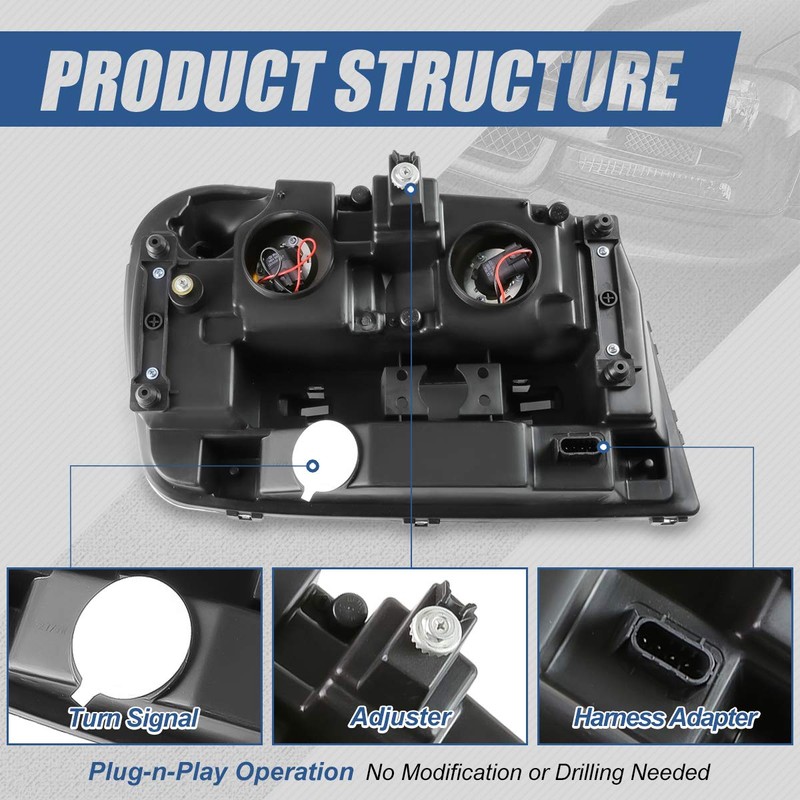 - 【Easy and Quick to Install】- Direct bolt-on fitment with Plug-n-Play style headlamps are easy to install, requiring no modification or drilling. Ideal OE replacement for factory unit to replace old and worn headlights. Comes with complete set of headlight (Driver and Passenger side).