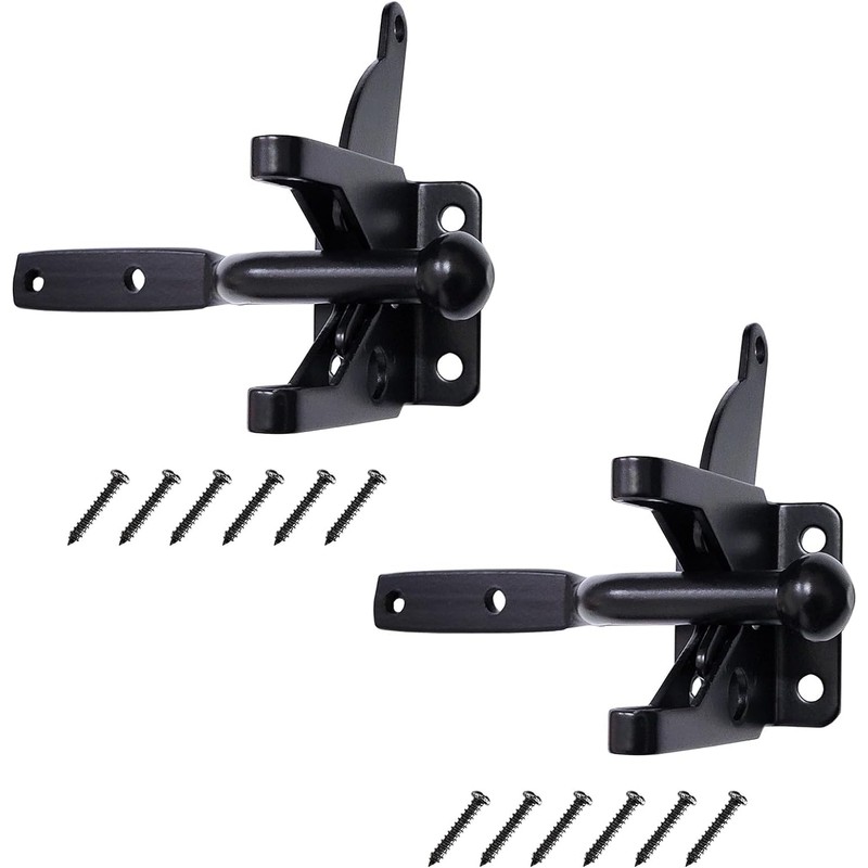 Pair of Black Self Locking Gate Latch Automatic Gravity Lever for Wood Fence Gate, Door Latches Steel (Normal)