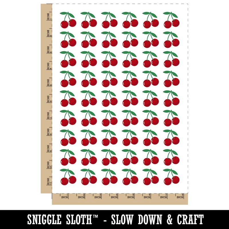 Pair of Cherries on Stem Cherry Fruit Temporary Tattoo Water Resistant Fake Body Art Set Collection - 54 1" Tattoos (1 Sheet)