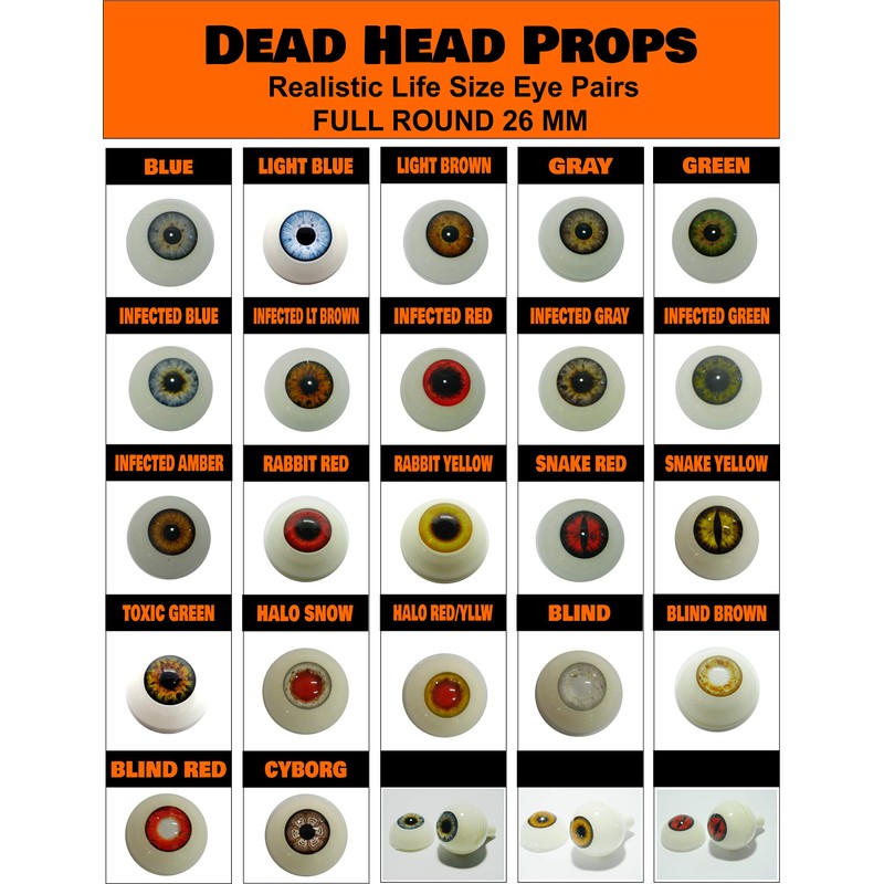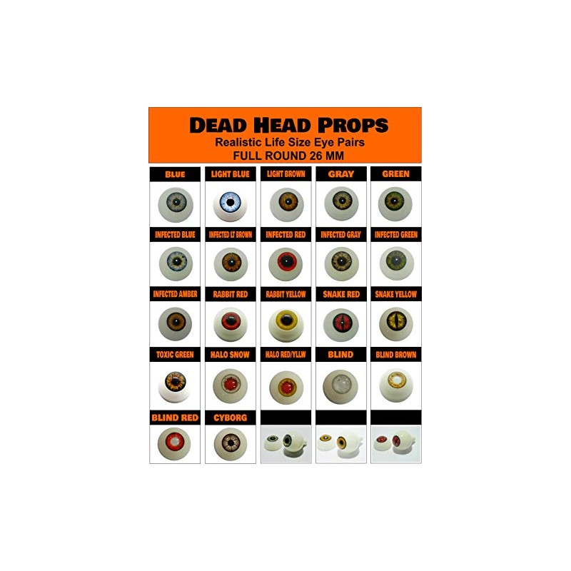 Pair of Realistic Acrylic Full Round Life Size Eyes for Halloween Props, Masks, Dolls or Bears 26 mm (Blind Brown)