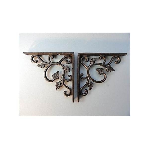 Pair of small cast Iron wall mounted antique style leaf sample, shelf brackets, wall bracket.