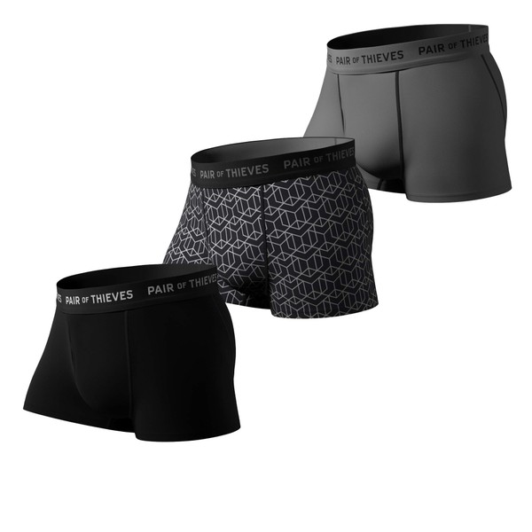 Pair of Thieves Super Fit Men’s Trunks 3 Pack, Black/Grey, X-Large
