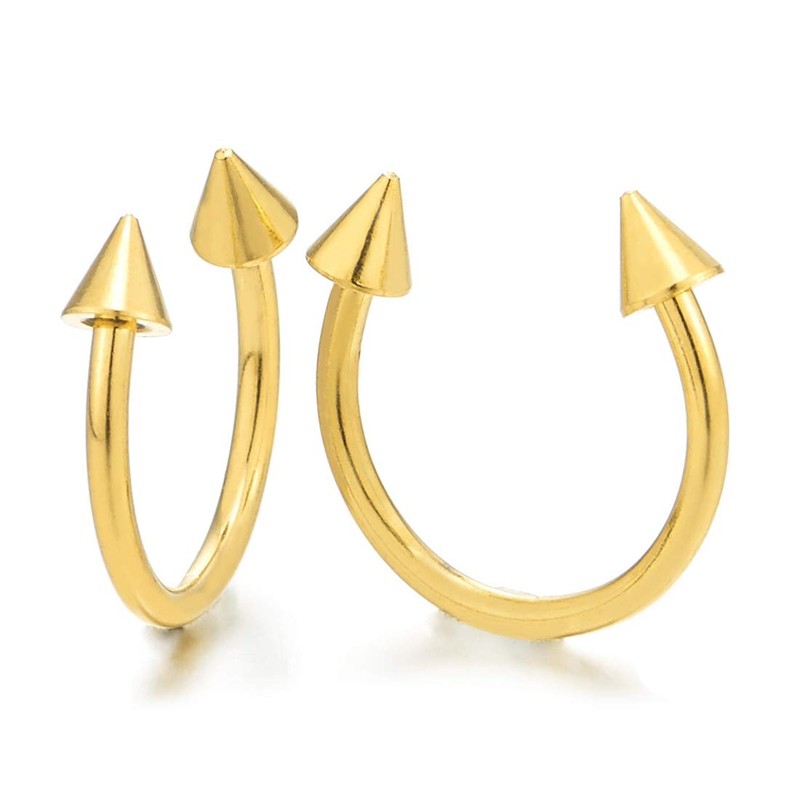 Pair Steel Gold Color Spike Arrow Half Circle Huggie Hinged Earrings for Men Women, Screw Back(CA)