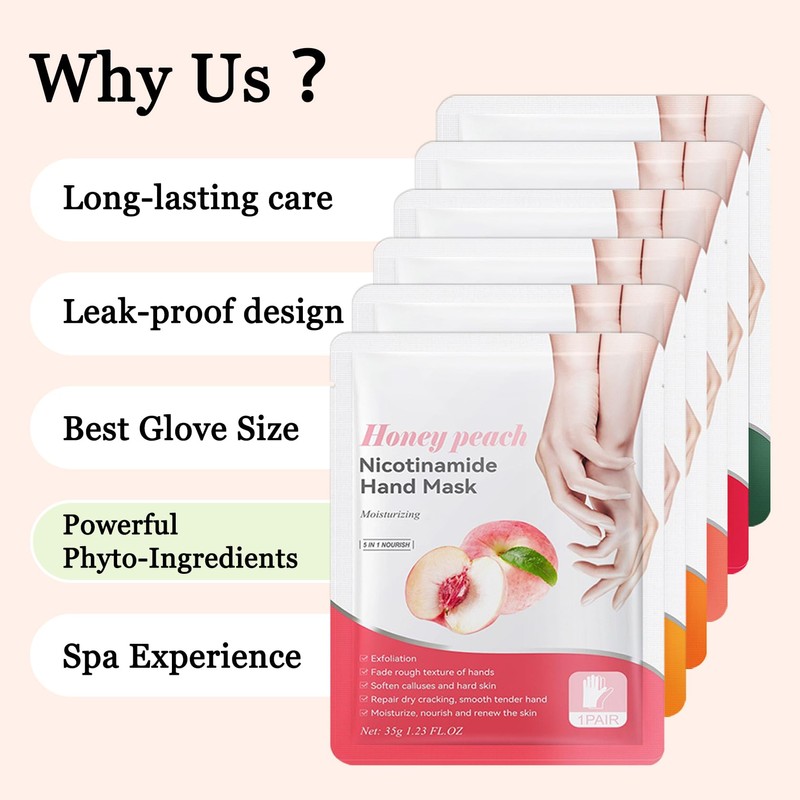 - Long-lasting Hydration: Hand mask gloves can perfectly fit a variety of hand shapes, whether it is slim fingers or slightly thicker palms, you can find a comfortable wearing experience, as if customized for your hands, so that hand care becomes more precise and effective