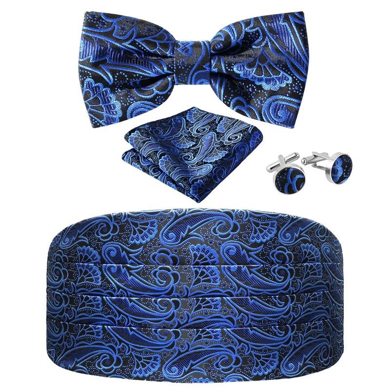 Paisley Cummerbund and Bow Tie Set Adjustable Formal Men's Cumberbund Tuxedo Bowtie Cufflinks Set & Pocket Squares